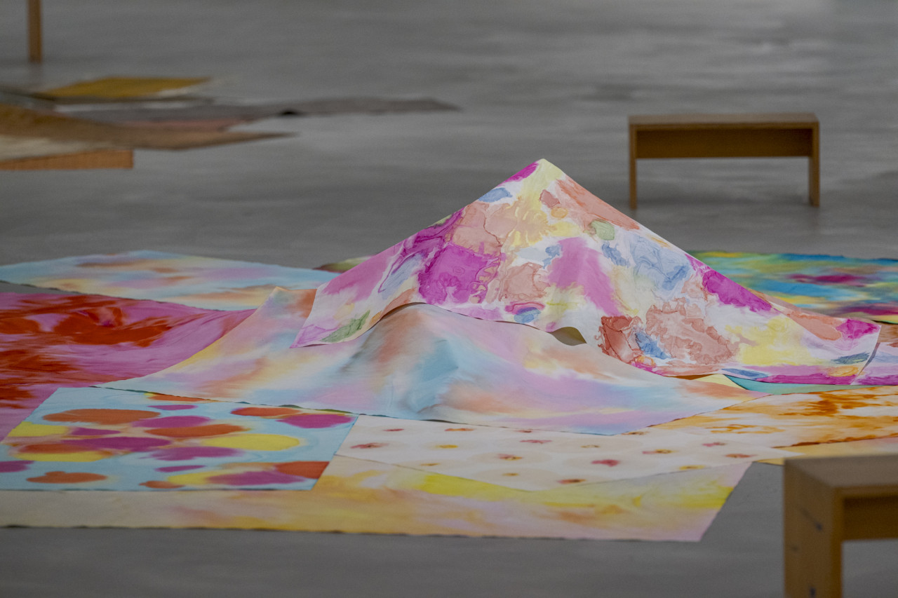 Natürliche Prozesse spiegeln sich in ihren Werken. Die Papiere werden zu Feldern, auf denen Prozesse stattfinden, die den gleichen physikalischen Kräften folgen, wie wir sie an Wolken sehen, in Flüssen und ihren Ausformungen etwa in einem Delta, am Wachstum von Bäumen, dem Wind und so fort. Bewegung als Grundprinzip und die gegenseitigen Abhängigkeiten aller Materialien untereinander zeigen sich.