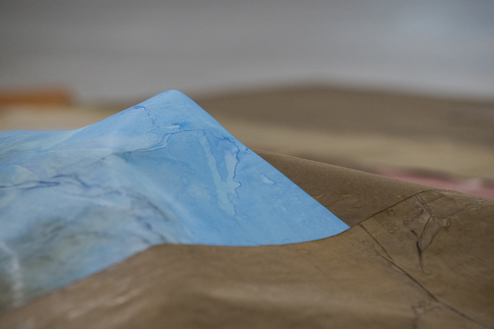 Natürliche Prozesse spiegeln sich in ihren Werken. Die Papiere werden zu Feldern, auf denen Prozesse stattfinden, die den gleichen physikalischen Kräften folgen, wie wir sie an Wolken sehen, in Flüssen und ihren Ausformungen etwa in einem Delta, am Wachstum von Bäumen, dem Wind und so fort. Bewegung als Grundprinzip und die gegenseitigen Abhängigkeiten aller Materialien untereinander zeigen sich.
