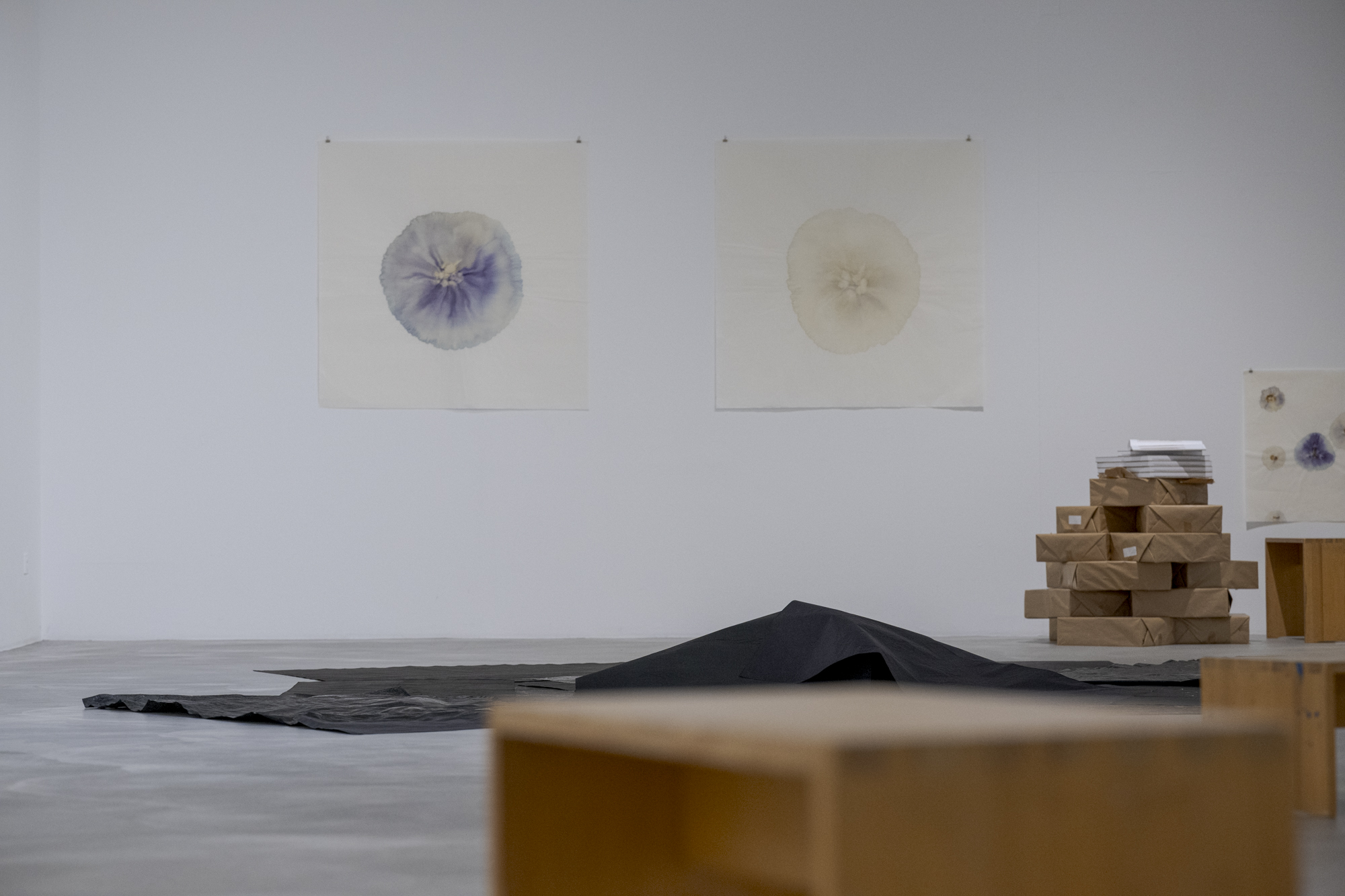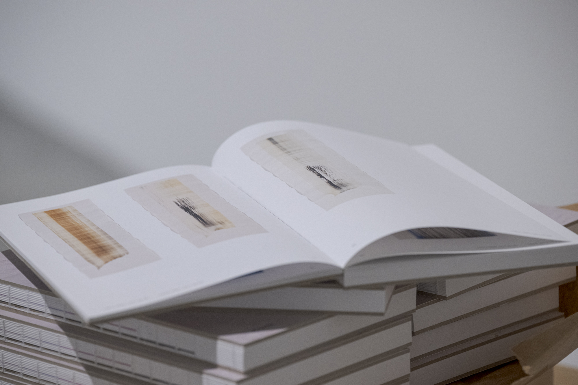 Ihre Präsentation gilt sowohl einzelnen Blättern als auch zunehmend einer installativen Art, mehrere Blätter eng in Beziehung zu setzen.