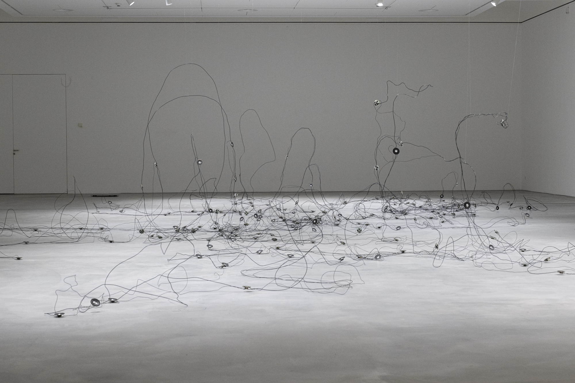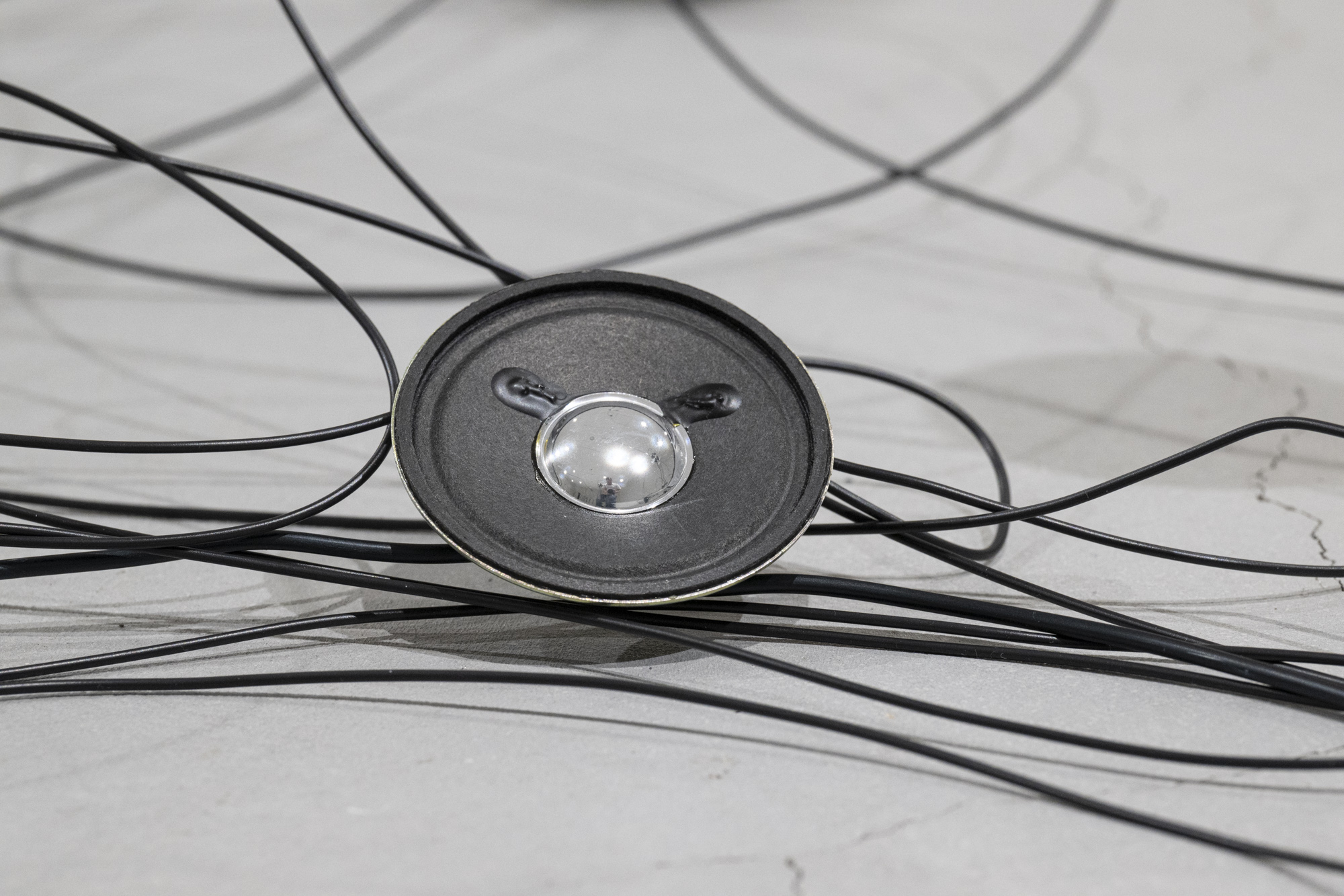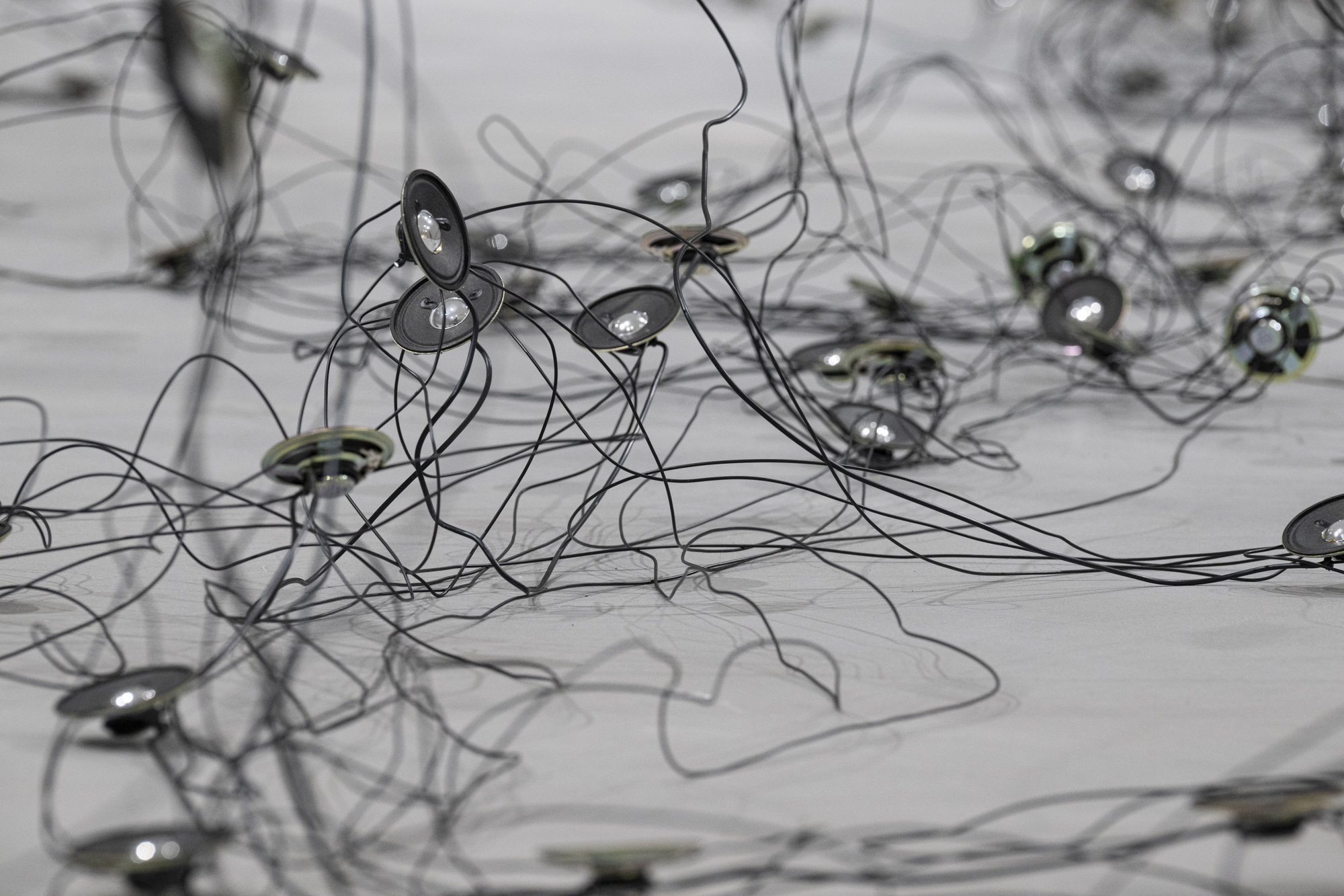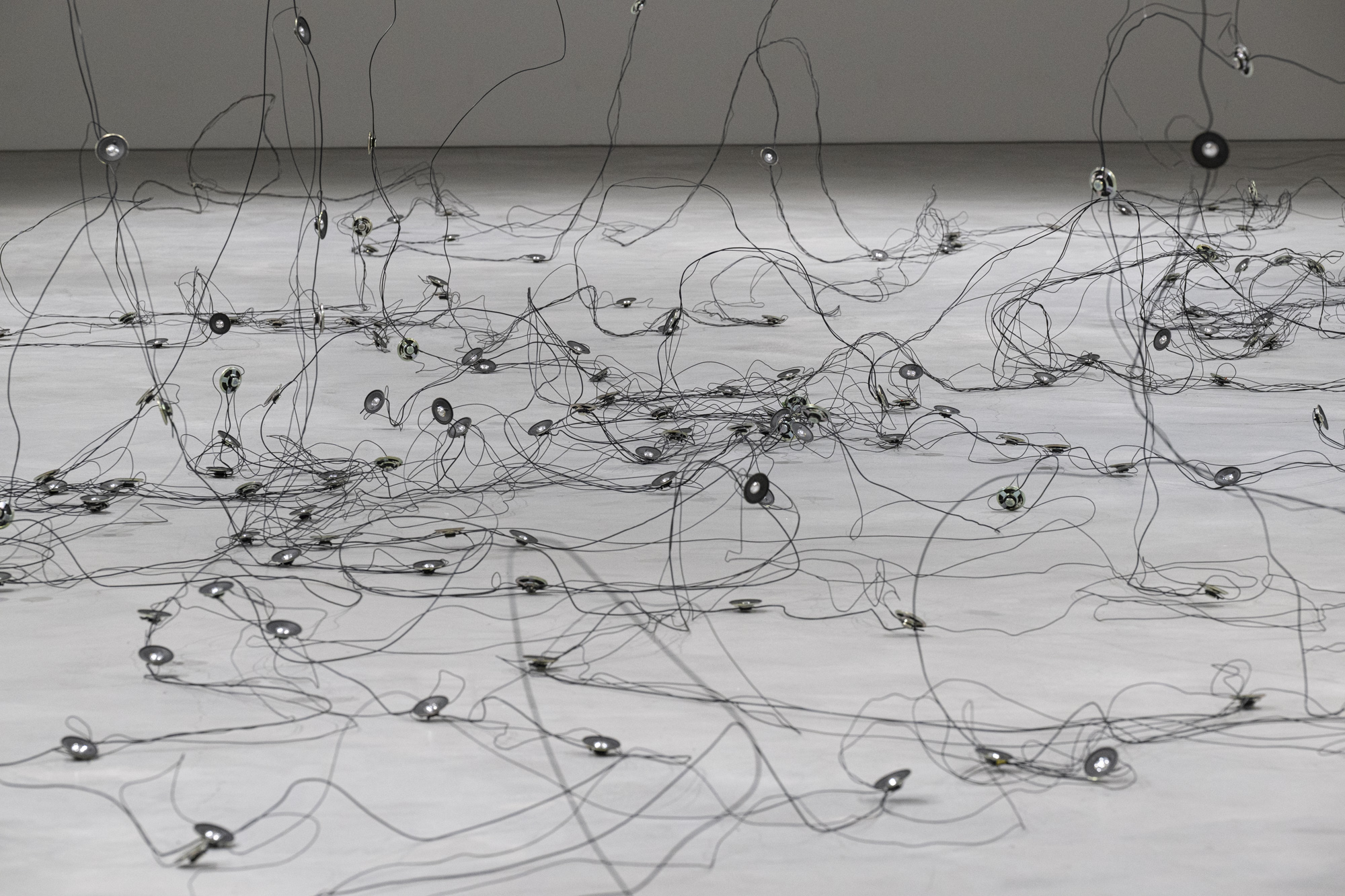 Für die Ausstellung im Kunstraum Engländerbau realisiert sie mit «Darunter» eine neue ortsspezifische Installation. Die Arbeit untersucht das Leben in den Böden und feine Prozesse und Verflechtungen, die sich im Verborgenen vollziehen. Aus Draht und Lautsprechern entsteht eine Zeichnung im Raum, in der Linie, Klang und räumliche Setzung aufeinandertreffen.