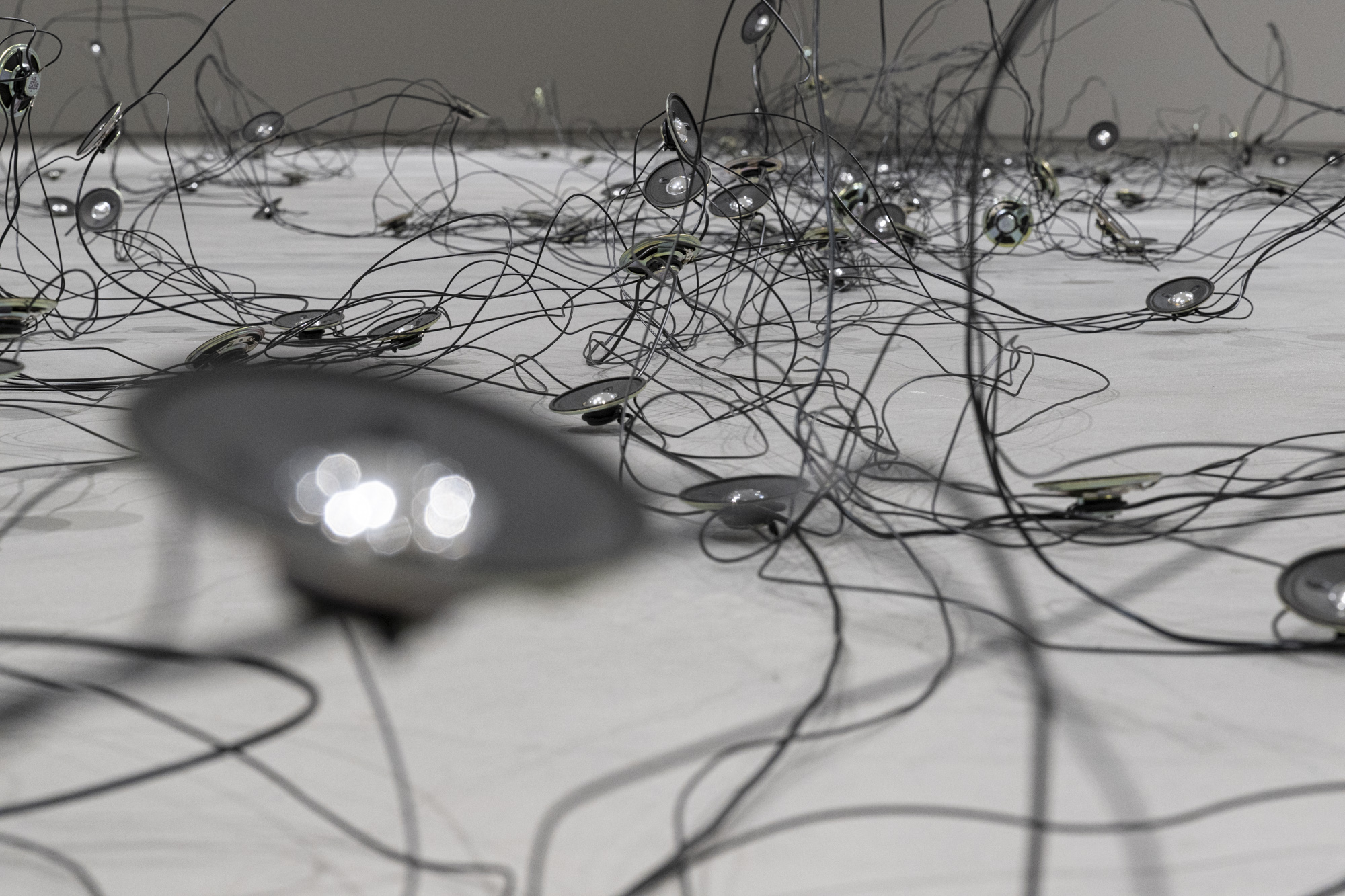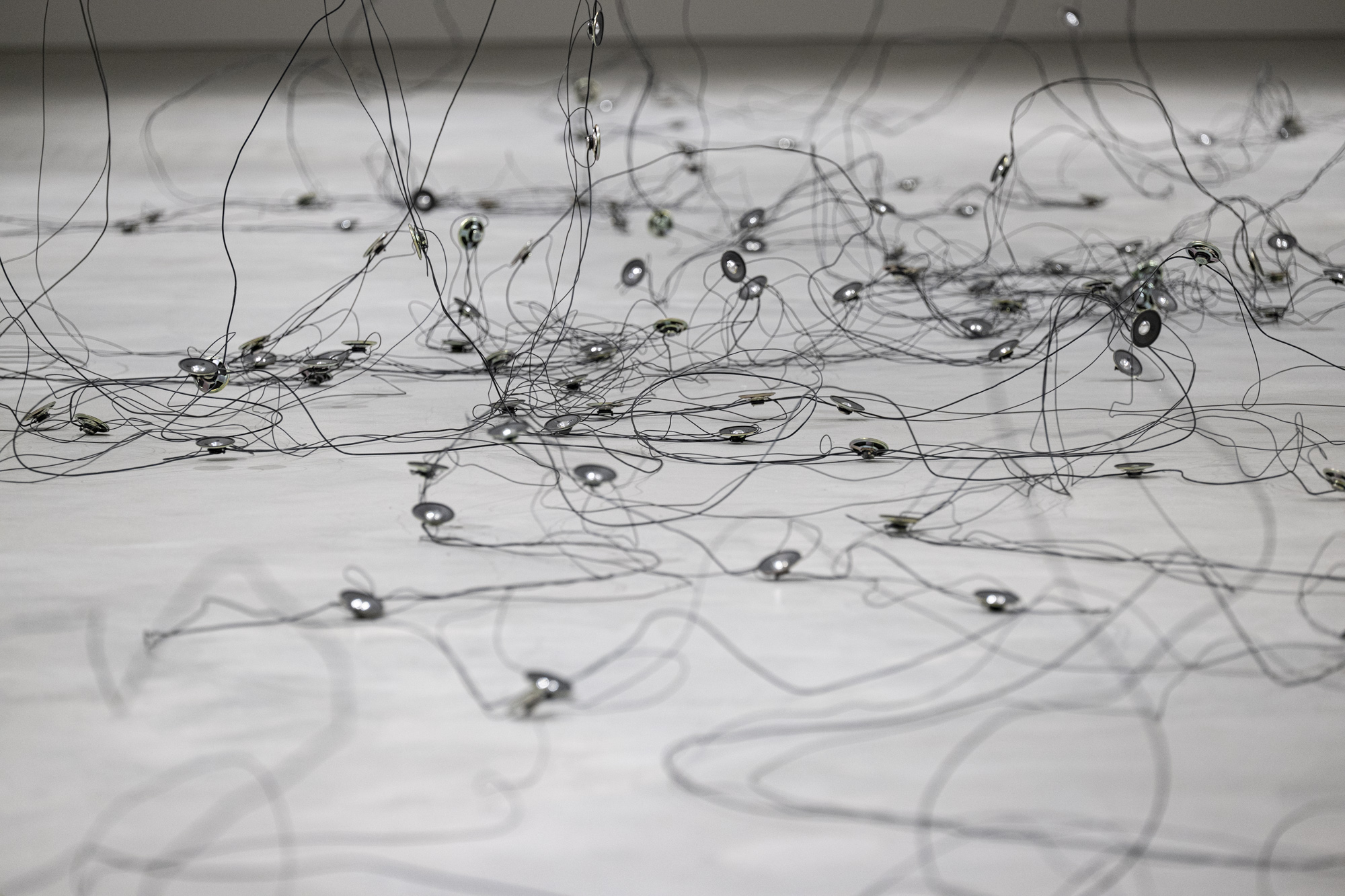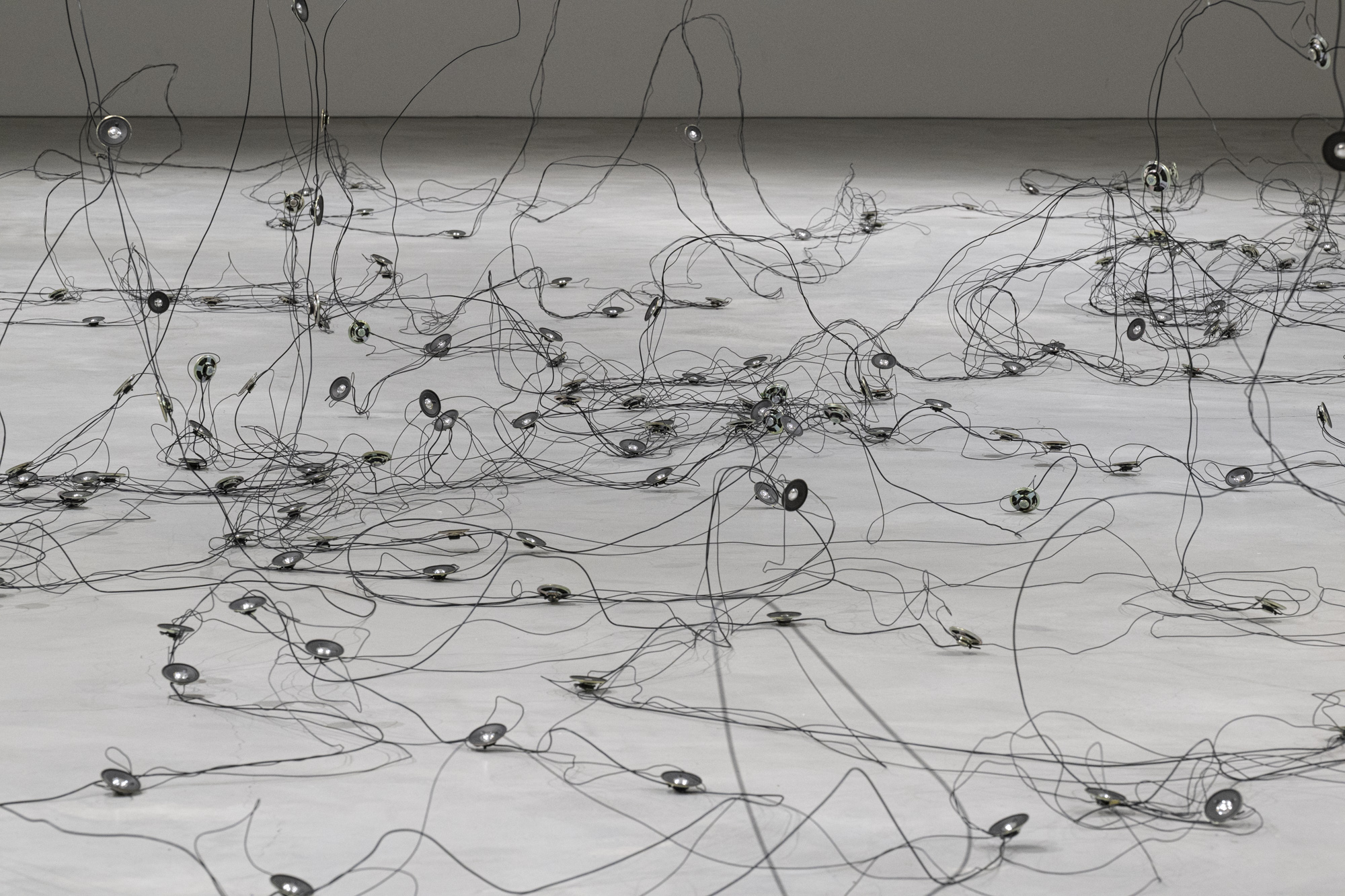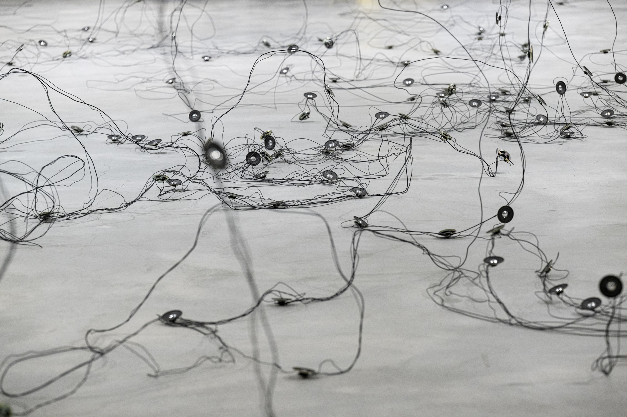 Für die Ausstellung im Kunstraum Engländerbau realisiert sie mit «Darunter» eine neue ortsspezifische Installation. Die Arbeit untersucht das Leben in den Böden und feine Prozesse und Verflechtungen, die sich im Verborgenen vollziehen. Aus Draht und Lautsprechern entsteht eine Zeichnung im Raum, in der Linie, Klang und räumliche Setzung aufeinandertreffen.