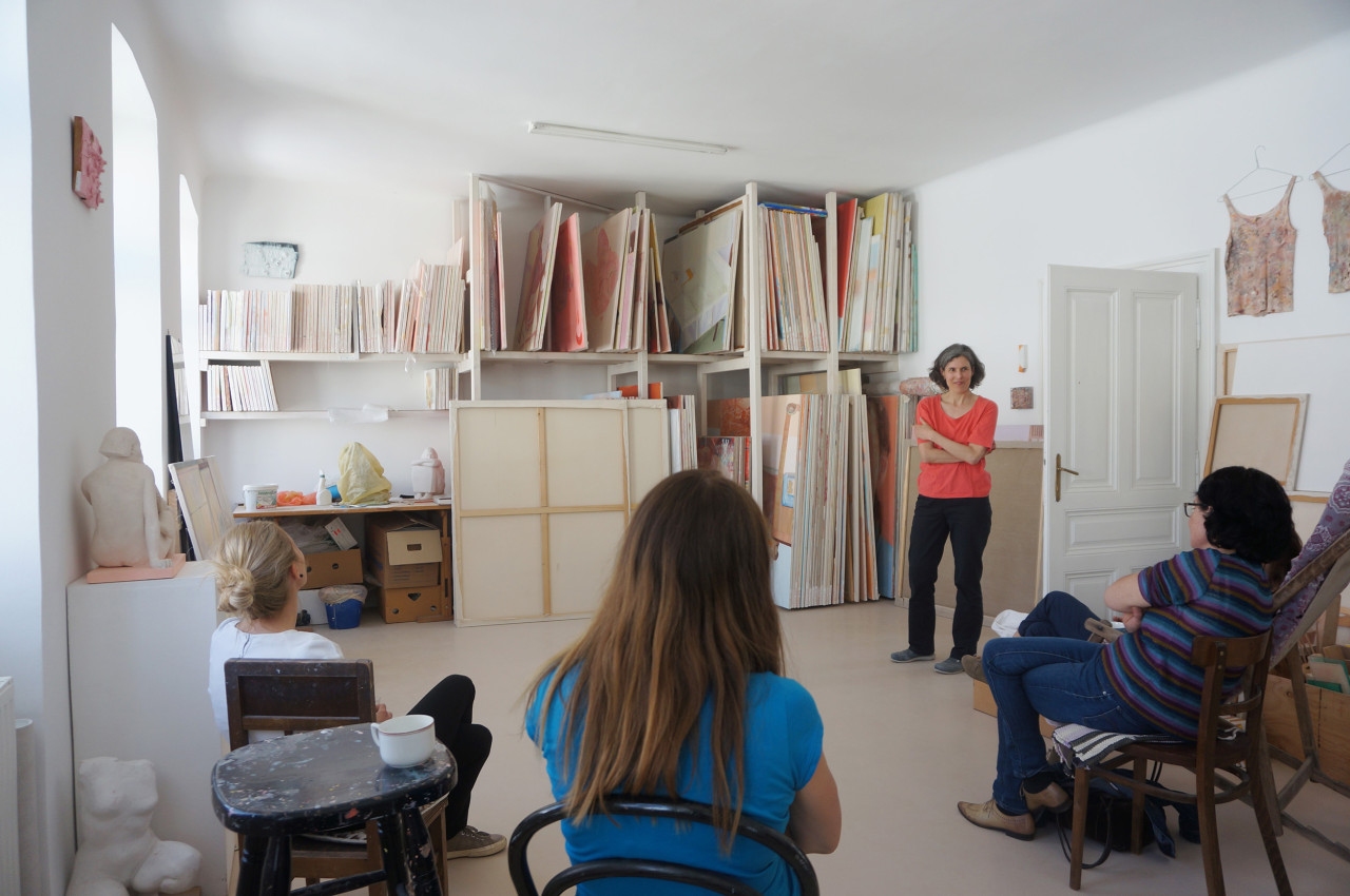 In Ateliergesprächen tauschen sich sieben Künstlerinnen in Wien seit einigen Jahren regelmässig über ihre neuen und gerade entstehenden Arbeiten aus.
